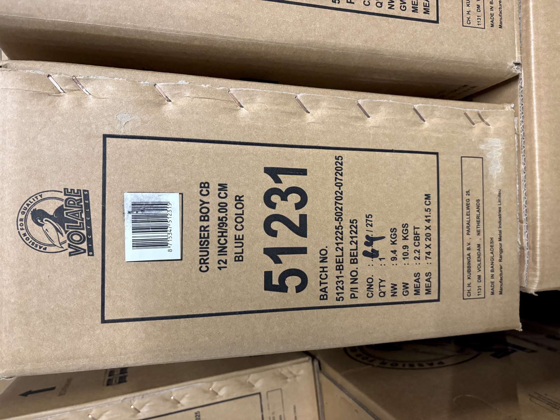 Volare Blue Cruiser Kinderfiets - Jongens - 12 inch - Blauw - 85% afgemonteerd