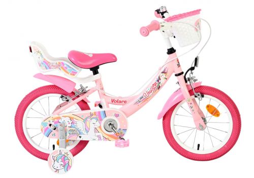 Volare Unicorn Kinderfiets - Meisjes - 14 inch - Roze - Twee Handremmen